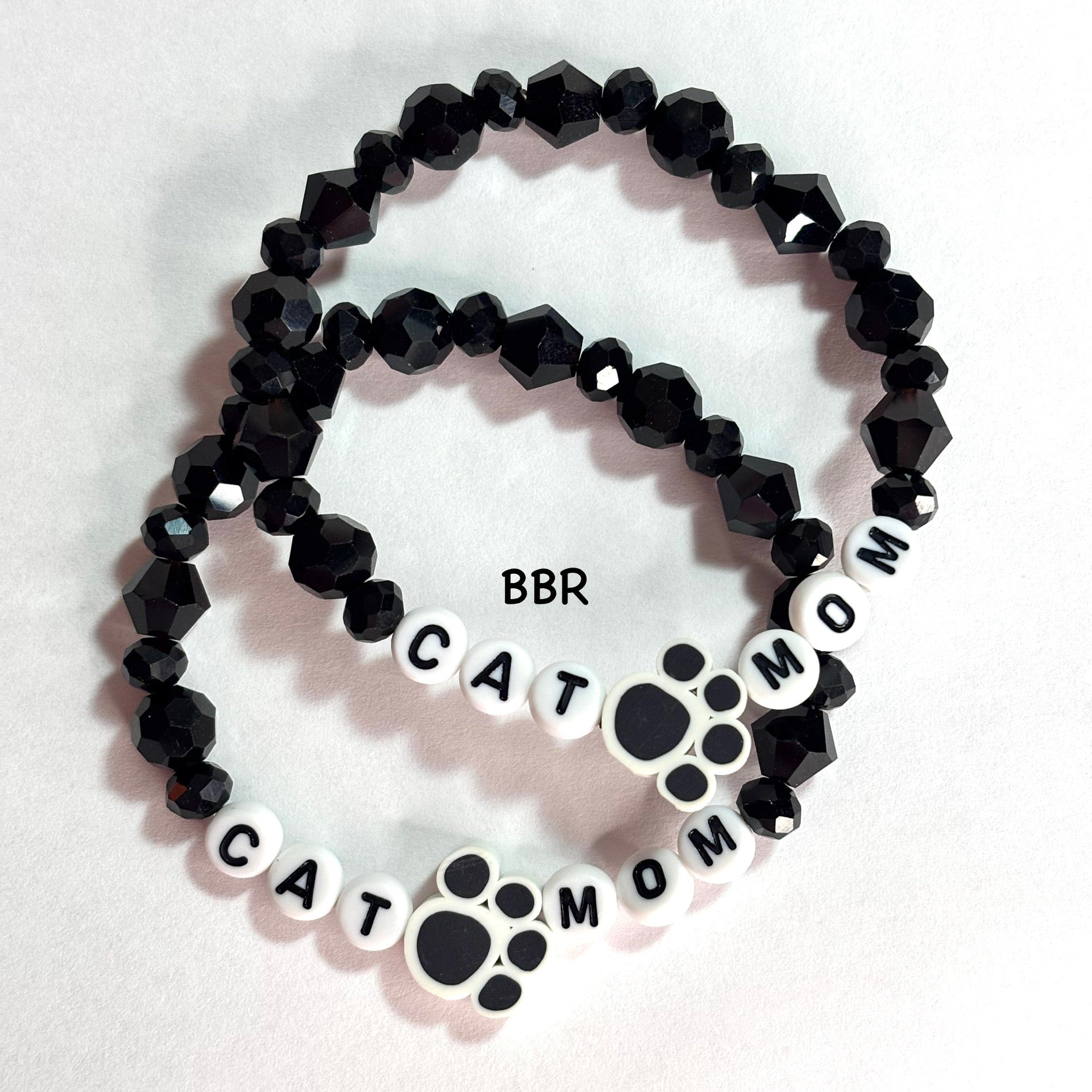 Handmade with beautiful faceted, bicone, and gemcut glass beads, letter beads, and a paw clay bead.